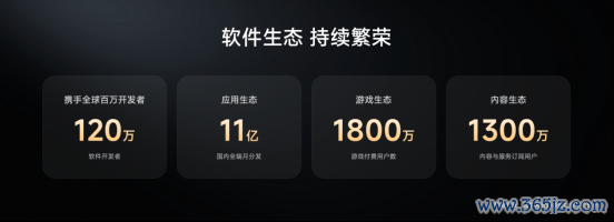 普遍的用户范围带动小米软件生态捏续茁壮。据本次大会流露,小米软件设备者数目当今已达到120万,小米诈欺生态的国内全端月分发量冲突11亿,其中游戏生态的付用度户数冲突1800万,本体生态的订阅用户数冲突1300万。